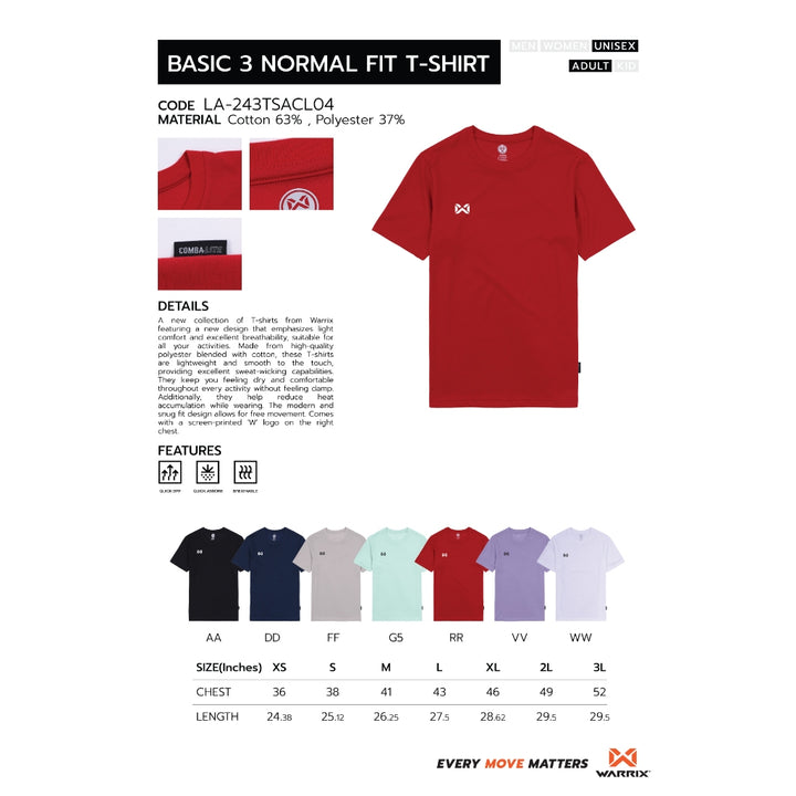 A new collection of T-shirts from Warrix featuring a new design that emphasizes light comfort and excellent breathability, suitable for all your activities. Made from high-quality polyester blended with cotton, these T-shirts are lightweight and smooth to the touch, providing excellent sweat-wicking capabilities. They keep you feeling dry and comfortable throughout every activity without feeling damp. Additionally, they help reduce heat accumulation while wearing. The modern and snug fit design allows for free movement. Comes with a screen-printed 'W' logo on the right chest.