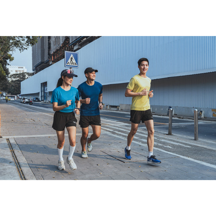 Round neck running shirt, short sleeves, mesh side stripes for better ventilation and sweat.