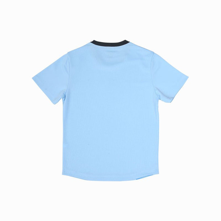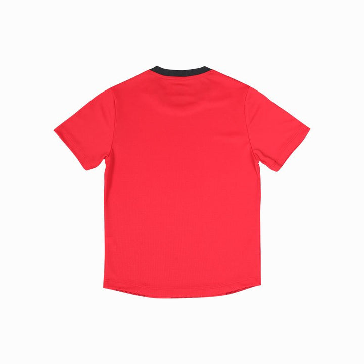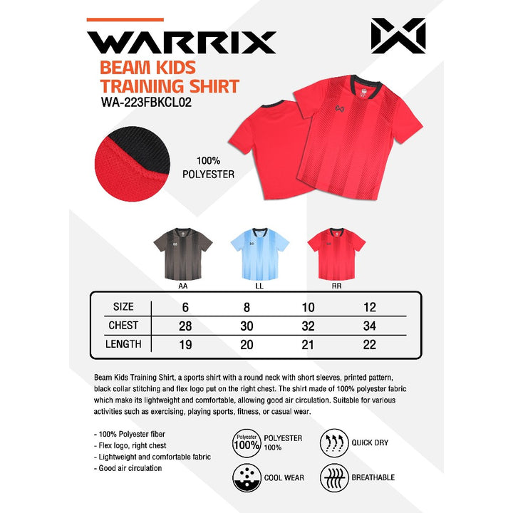 Beam Kids Training Shirt, a sports shirt with a round neck with short sleeves, printed pattern, black collar stitching and flex logo put on the right chest. The shirt made of 100% polyester fabric which make its lightweight and comfortable, allowing good air circulation. Suitable for various activities such as exercising, playing sports, fitness or casual wear.