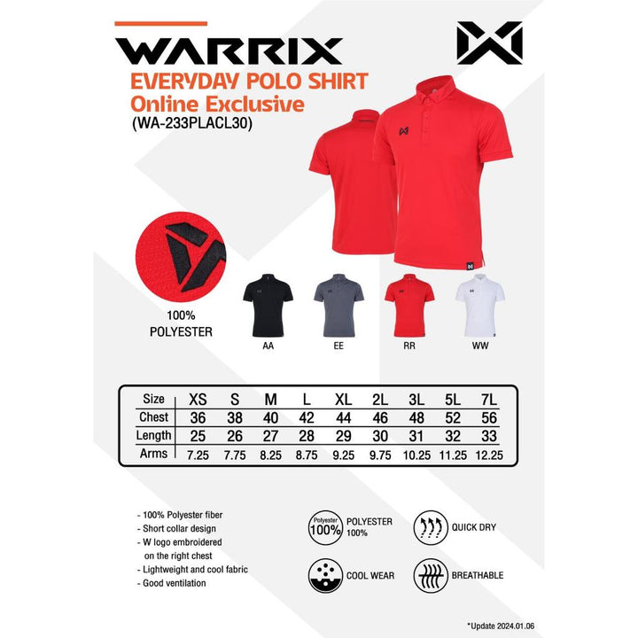 Warrix Everyday Polo Shirt with collar and 5 buttons to prevent the neck from sagging, increasing confidence and being ready for every situation. Soft fabric, dries quickly, good ventilation, confident all day long