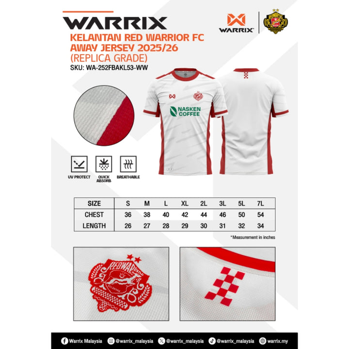 WARRIX Kelantan Red Warrior FC Away Jersey 2025/26 (Replica Grade)
