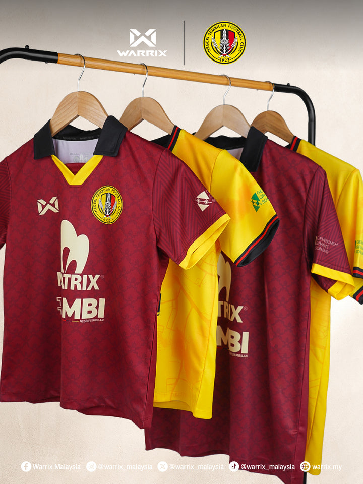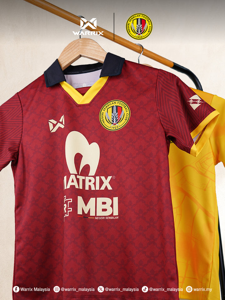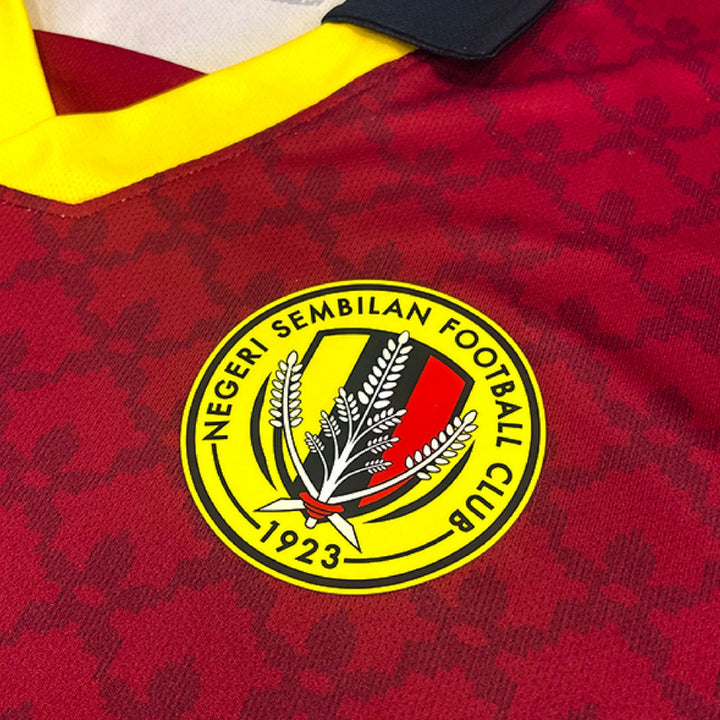 Jersi โHomeโ edisi penyokong Negeri Sembilan FC musim 2025-2026 tampil dengan kombinasi warna ikonik Merah, Hitam dan Kuning digandingkan dengan elemen Bungo Lado yang melambangkan keunikan di negeri ini.