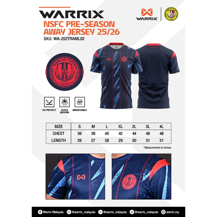 Introducing the official NSFC Pre-Season Away Jersey 25/26 — designed exclusively for The Jangs senior squad as they prepare for the upcoming season. This bold pre-season edition combines performance, comfort, and a striking modern design that proudly carries the club’s identity. Whether you're at the stadium, on the field, or showing your club pride on the streets — this jersey delivers comfort, performance, and Negeri identity.
