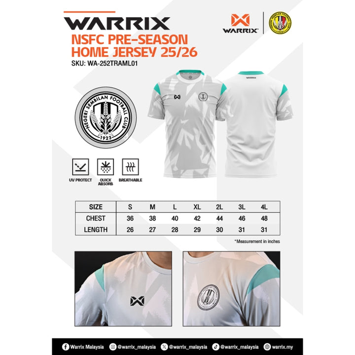 Introducing the official NSFC Pre-Season Home Jersey 25/26 — designed exclusively for The Jangs senior squad as they prepare for the upcoming season. This bold pre-season edition combines performance, comfort, and a striking modern design that proudly carries the club’s identity. Whether you're at the stadium, on the field, or showing your club pride on the streets — this jersey delivers comfort, performance, and Negeri identity.