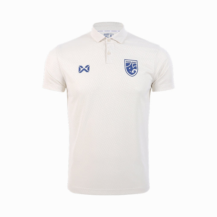 The Thai National Team Cheering Polo Shirt (Cheer Version) is designed as a polo shirt, short sleeves, slim fit, produced using COMBA+ LITE innovation and using printing techniques, Jacquard weaving innovation to create the same pattern as the competition uniform for players (Player Version), the ivory Warrix logo on the right chest and the War Elephant logo on the left chest perfectly.
