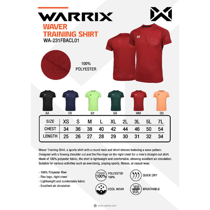Waver Training Shirt, round neck, short sleeve sports shirt, woven wave pattern. Edited with sloping shoulders, flex logo, Warrix.